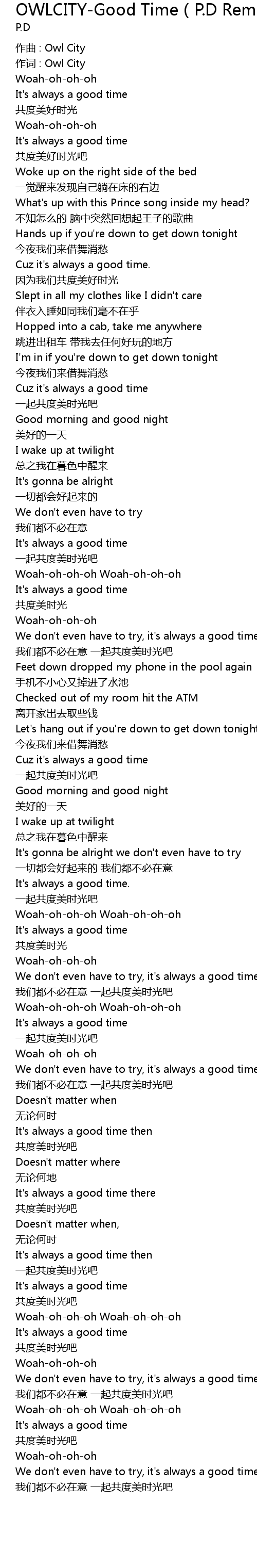 | Song | OWLCITY-Good Time(P.D Remix) |
