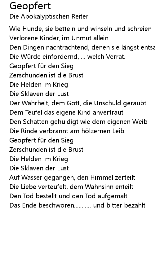 | Song | Geopfert |