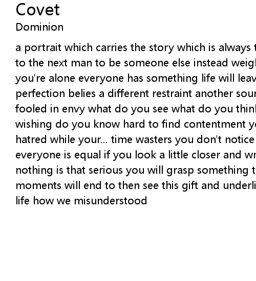 | a portrait which carries the story which is always the same compare this cross to the next man to be someone else instead weighted with this burden you believe you're alone everyone has something life will leave you to learn where you see a perfection belies a different restraint another source of disillusions got you fooled in envy what do you see what do you think you see do you know what you're wishing do you know hard to find contentment you can't see past your own self hatred while your... time wasters you don't notice if you let this beat you everyone is equal if you look a little closer and wnen you learn to see that nothing is that serious you will grasp something to live for these feeting moments will end to then see this gift and underline the truth what we take for life how we misunderstood |