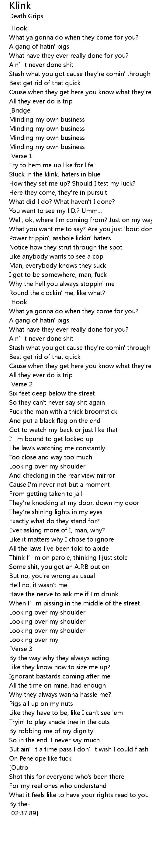 | [00:34.99] | Stuck in the klink, haters in blue |