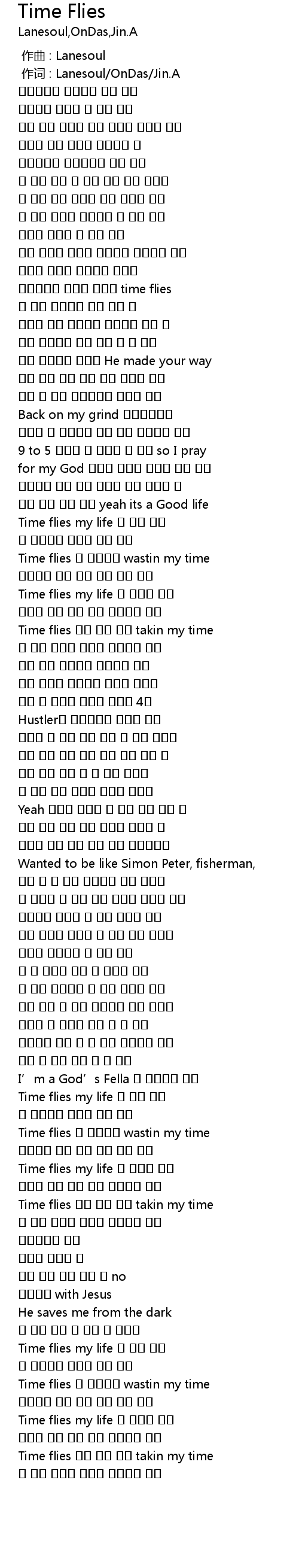 | [02:41.440] | Time flies my life 주 없인 벅차 |
