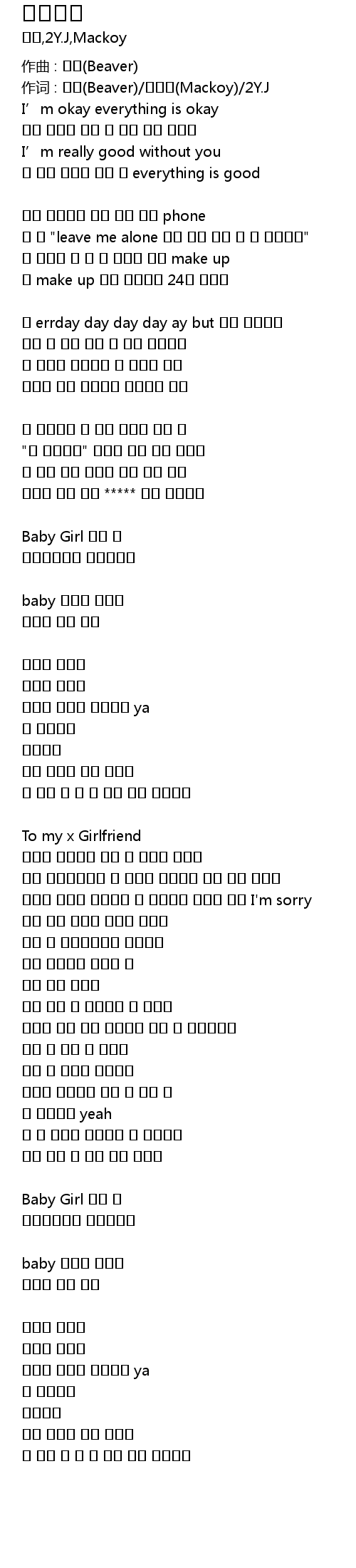 作词 : 비버(Beaver)/맥코이(Mackoy)/2Y.J |