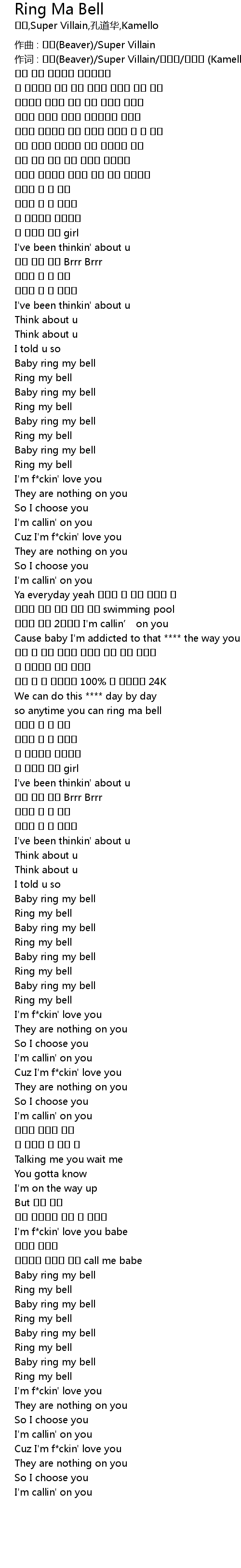 | 作词 : 비버(Beaver)/Super Villain/공도하/카멜로 (Kamello) | |