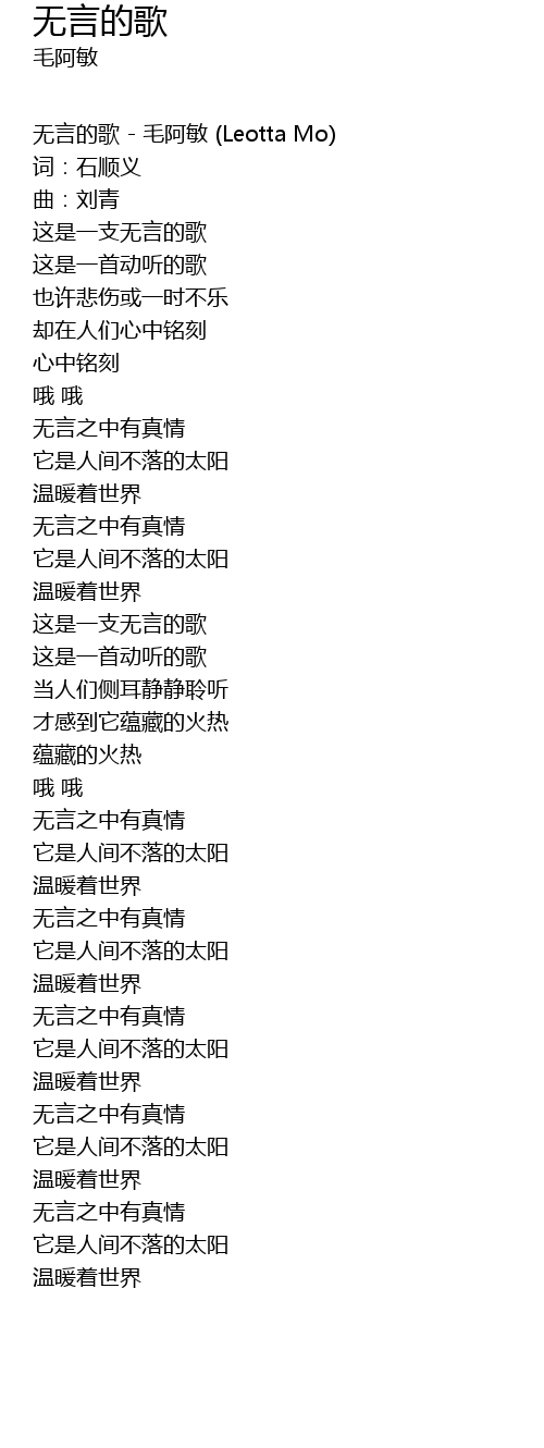 | 无言的歌 - 毛阿敏 (Leotta Mo) | |