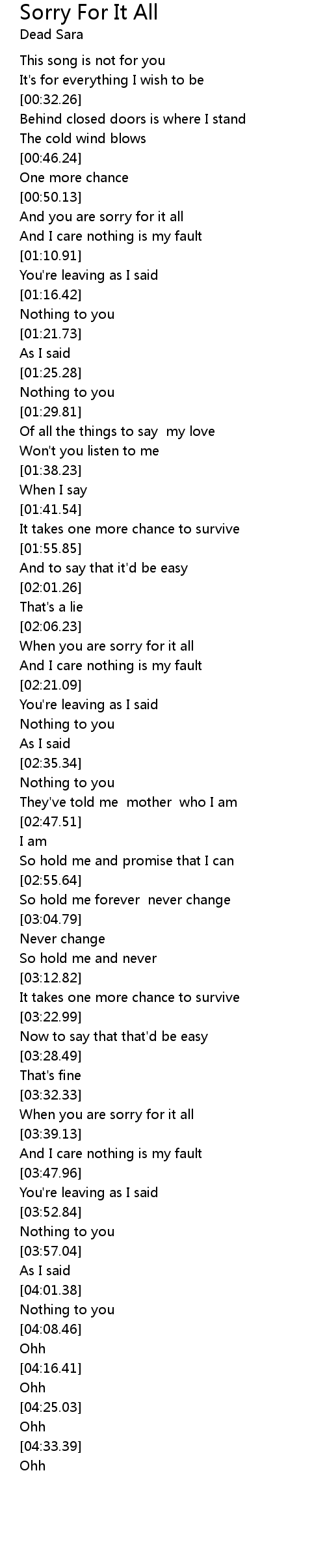 Sorry For It All Lyrics