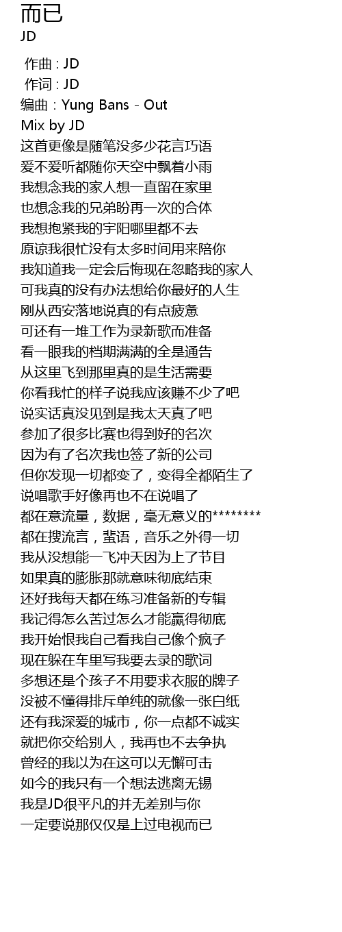 | [01:55.94] | wǒ shì JD hěn píng fán de bìng wú chā bié yǔ nǐ |