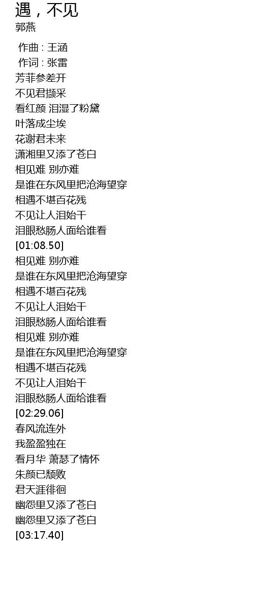 | [01:55.58] | 泪眼愁肠人面给谁看 |