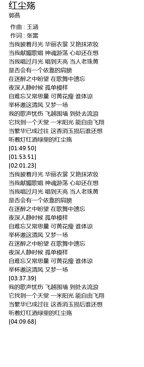 | [04:02.91] | 听着灯红酒绿里的红尘殇 |