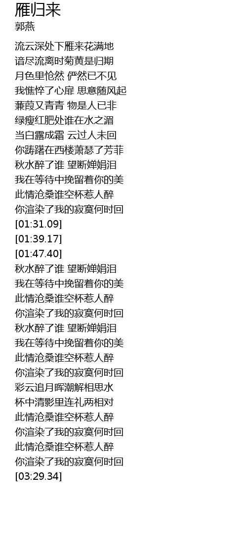 | [00:52.91] | 当白露成霜 云过人未回 |
