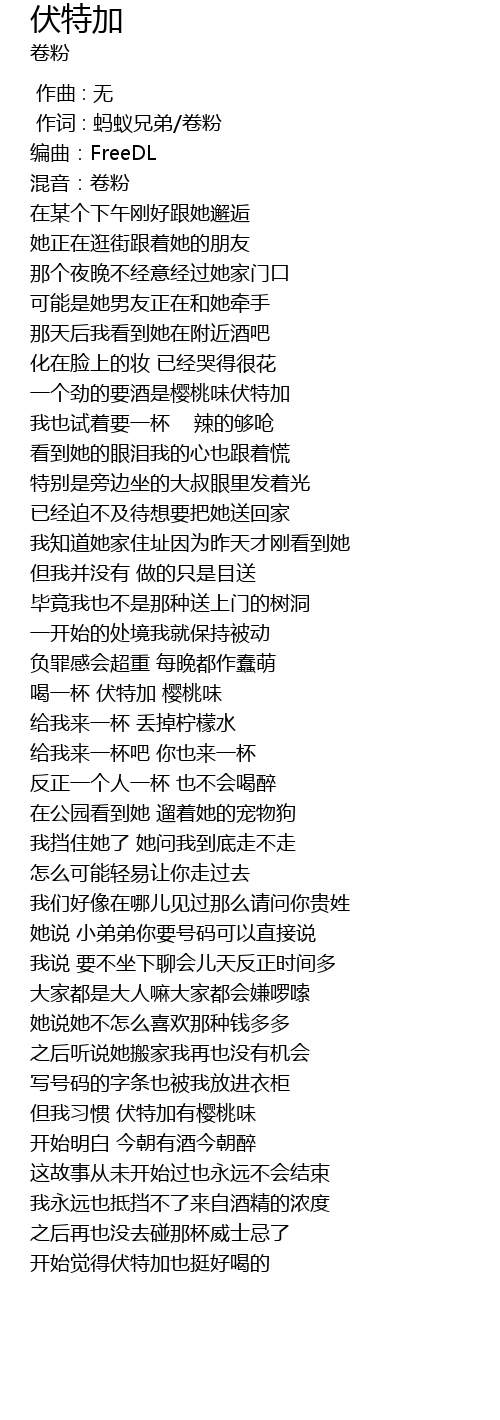 | [00:39.74] | 一个劲的要酒是樱桃味伏特加 |