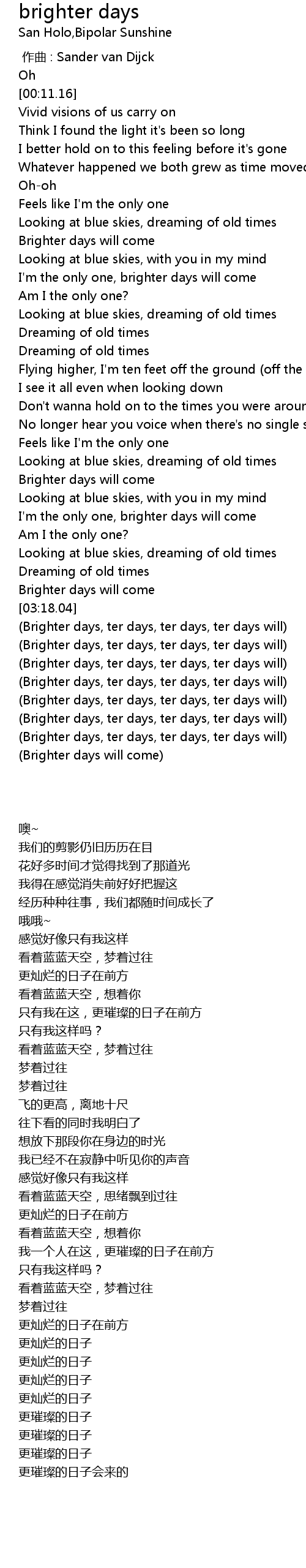| [03:18.45] | Brighter days, ter days, ter days, ter days will |