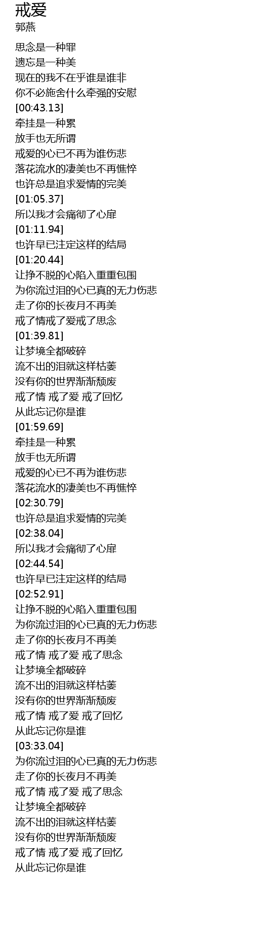 | [03:42.49] | 戒了情 戒了爱 戒了思念 |