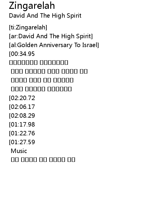 | [00:58.98][01:17.98][02:34.85][02:53.72] | זינגרלה מה ניתן לה |