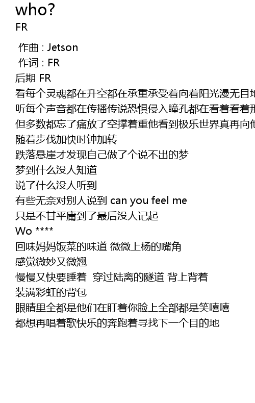 | [00:26.190] | 有些无奈对别人说到 can you feel me |