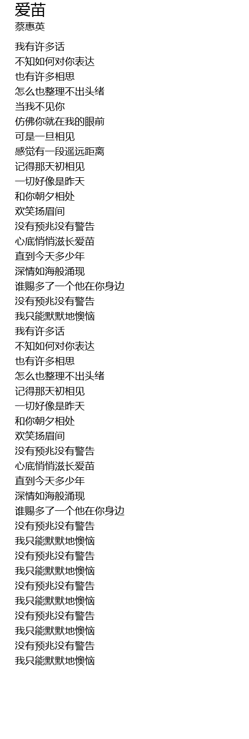| [01:54.361] | 心底悄悄滋长爱苗 |