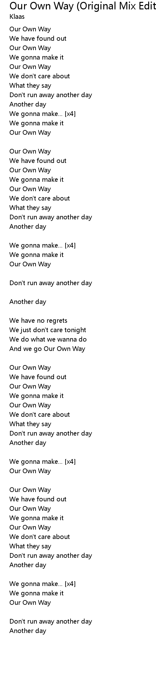 Our Own Way |