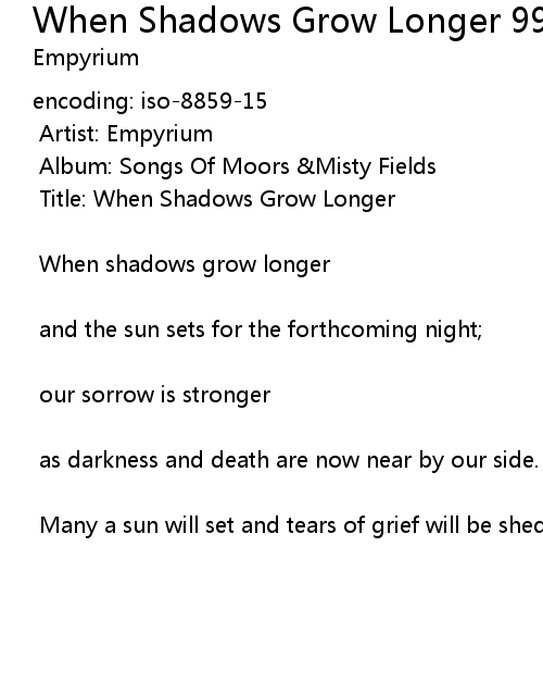 | Song | When Shadows Grow Longer 99 |