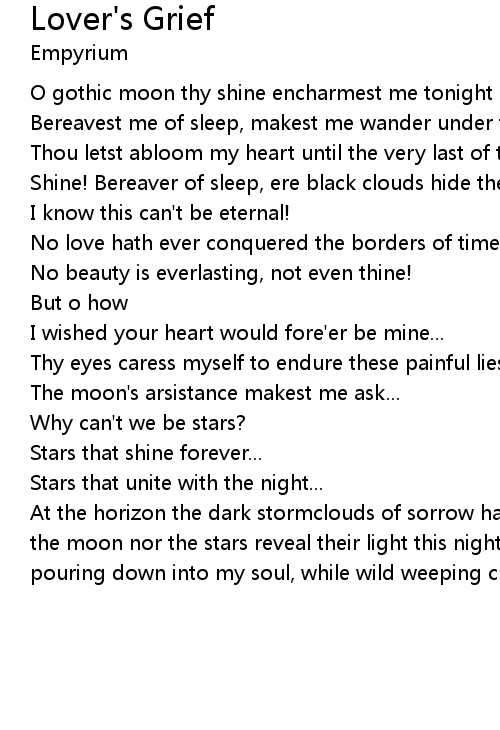 At the horizon the dark stormclouds of sorrow have gathered their might, neither the moon nor the stars reveal their light this night ...and rain is falling, pouring down into my soul, while wild weeping clouds enwrapp me in their woe. |