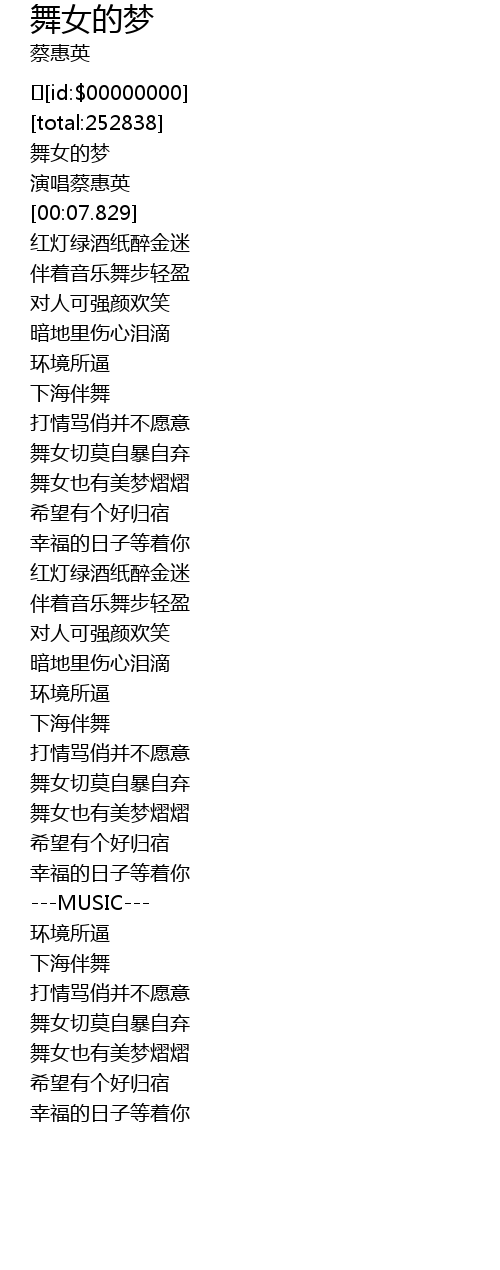 | [02:31.689] | 舞女切莫自暴自弃 |