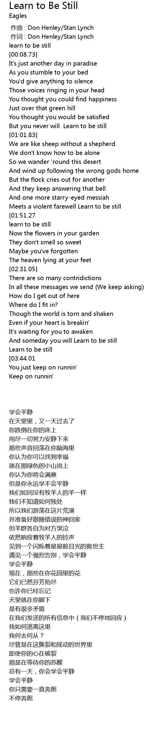 | [01:46.25] | Meets a violent farewell Learn to be still |