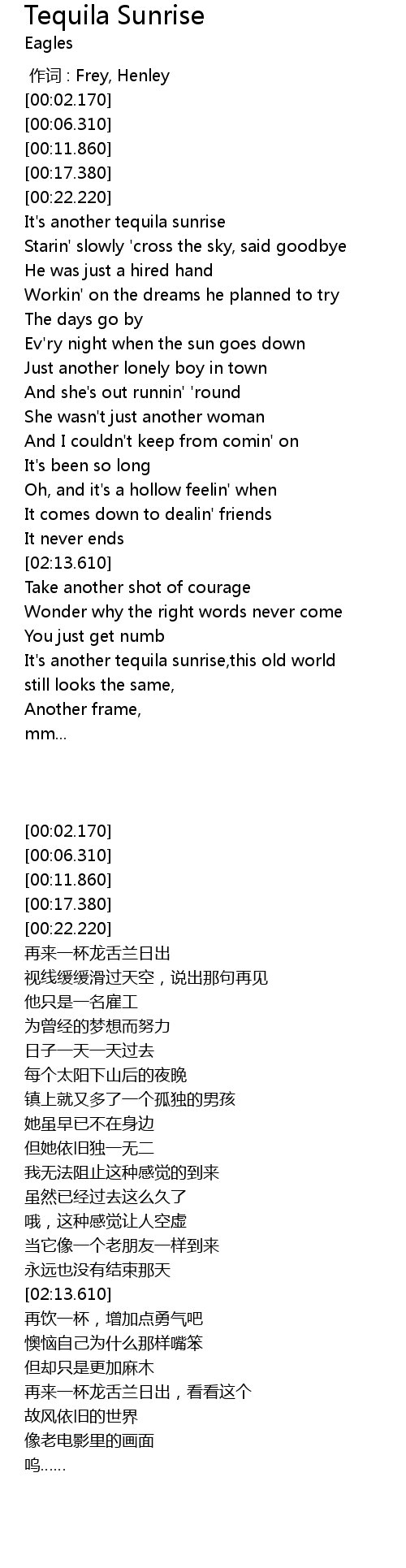 | [00:00.00] | zuò cí : Frey, Henley |