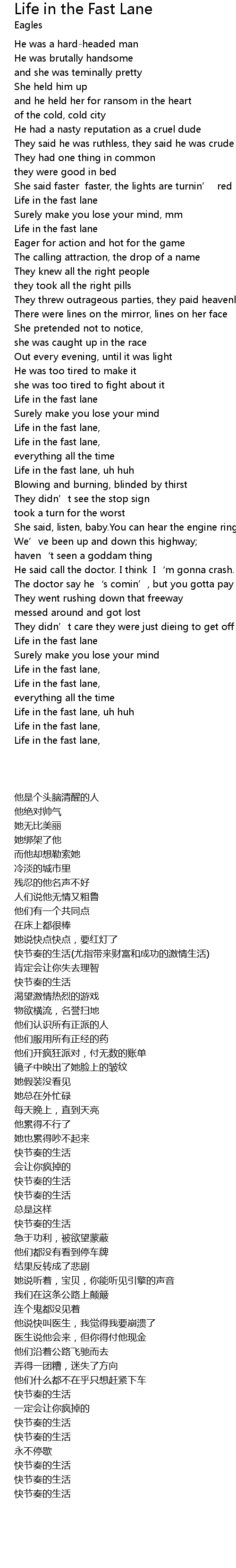 | [03:48.990] | Life in the fast lane, |