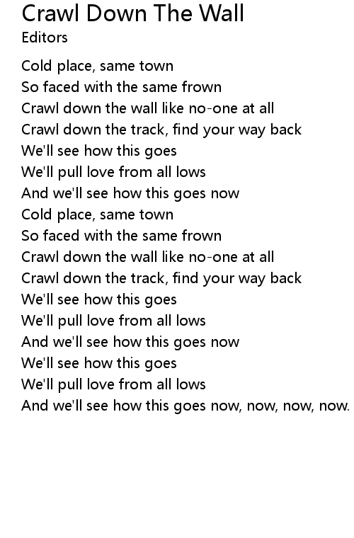 Crawl down the wall like no-one at all |