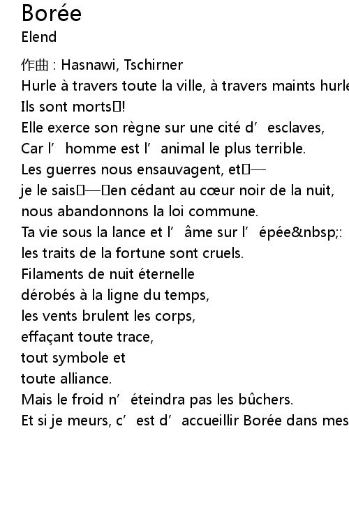 | Et si je meurs, c' est d' accueillir Boré e dans mes veines. |