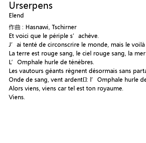 | Onde de sang, vent ardent : l' Omphale hurle de té nè bres. | |