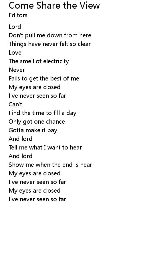 | Song | Come Share the View |