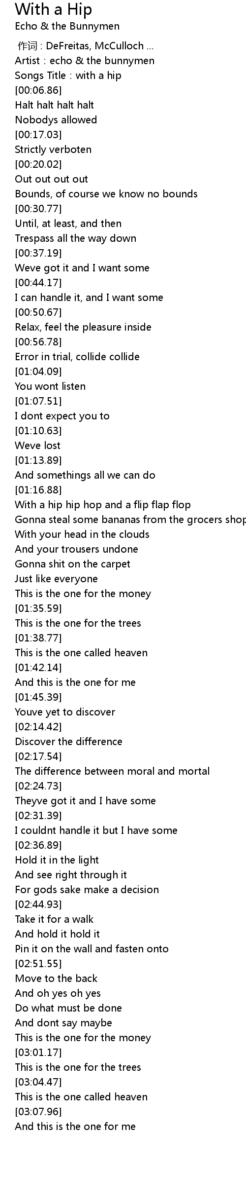 | [00:00.00] | 作词 : DeFreitas, McCulloch ... |