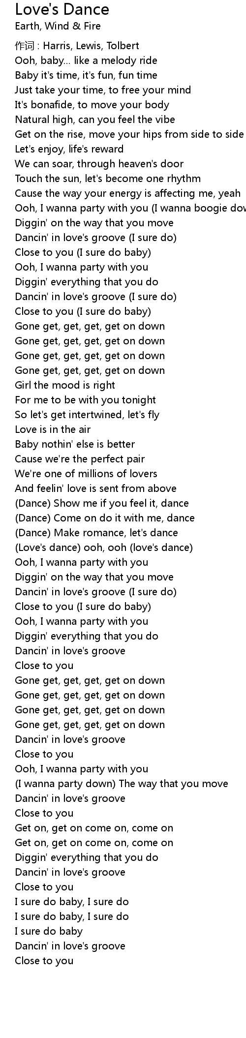 | 作词 : Harris, Lewis, Tolbert | |