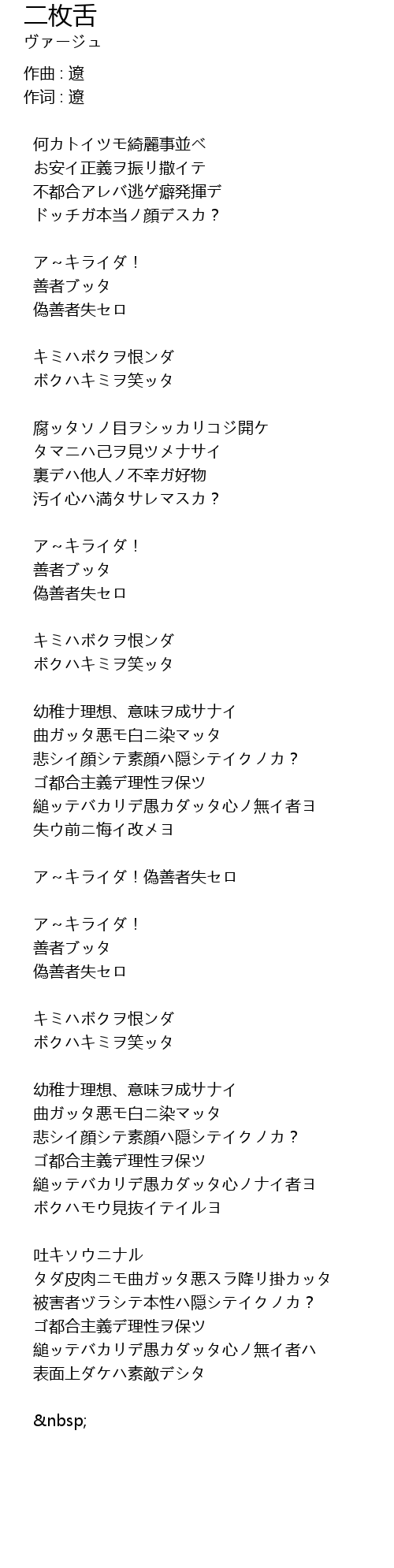 | 何カトイツモ綺麗事並ベ | |
