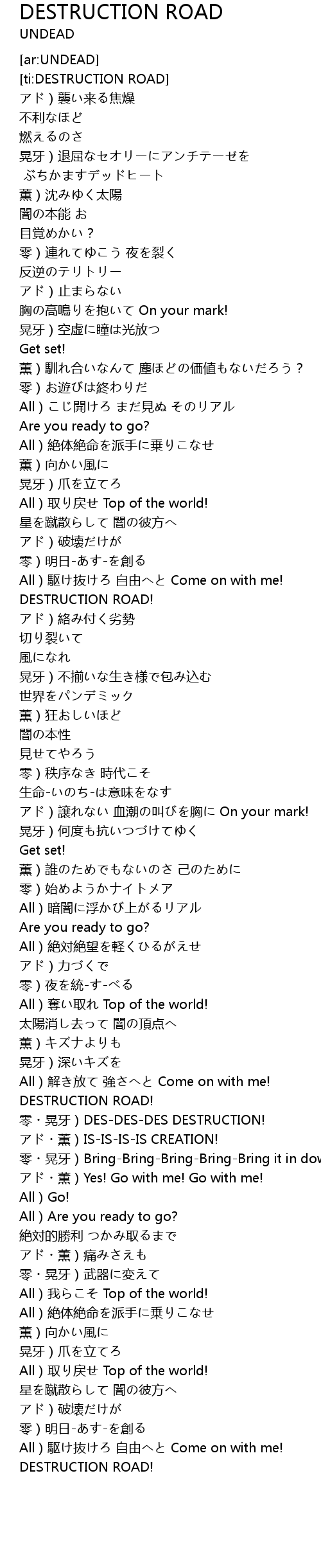 | [02:45.93] | líng huǎng yá DESDESDES DESTRUCTION! |