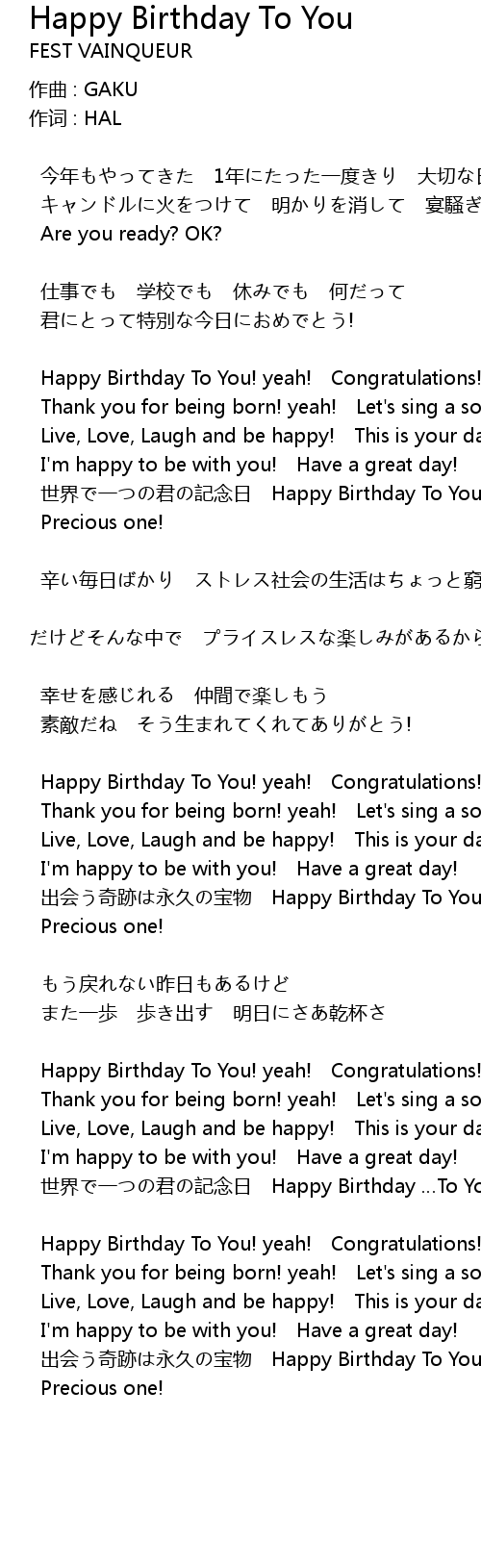 | Thank you for being born! yeah! Let' s sing a song! | |