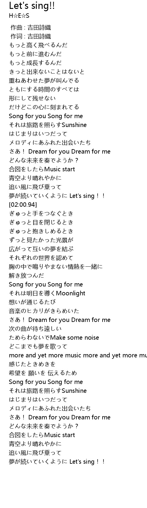| [01:52.18] | 夢が続いていくように Let's sing!! |