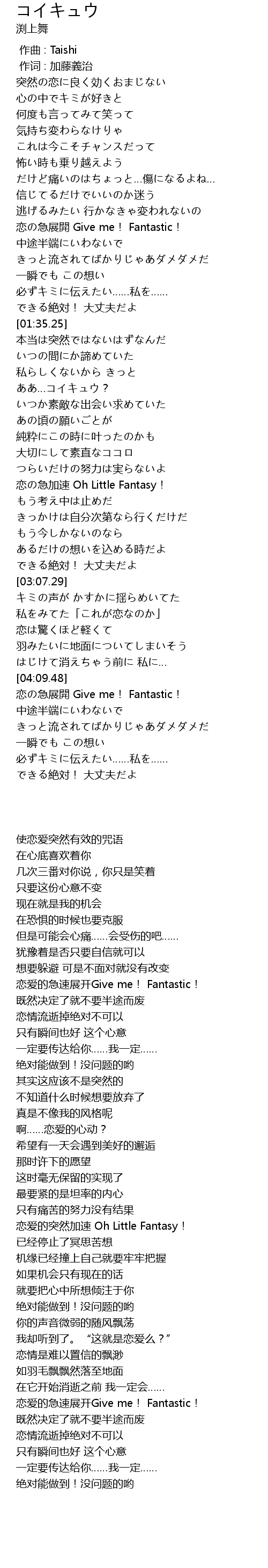 | [01:02.45] | 恋の急展開 Give me! Fantastic! |