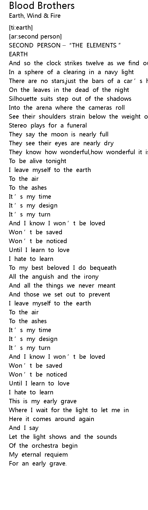 | [00:01.04] | SECOND PERSON –“THE ELEMENTS ” |