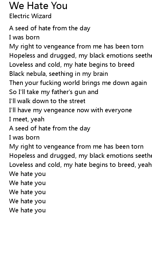 Loveless and cold, my hate begins to breed, yeah |
