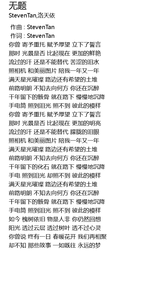 | [00:01.000] | 作词 : StevenTan |