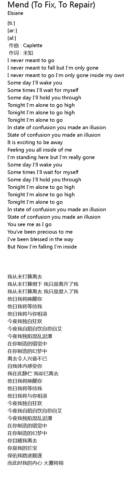 | [03:59.70] | But Now I'm falling I'm inside |