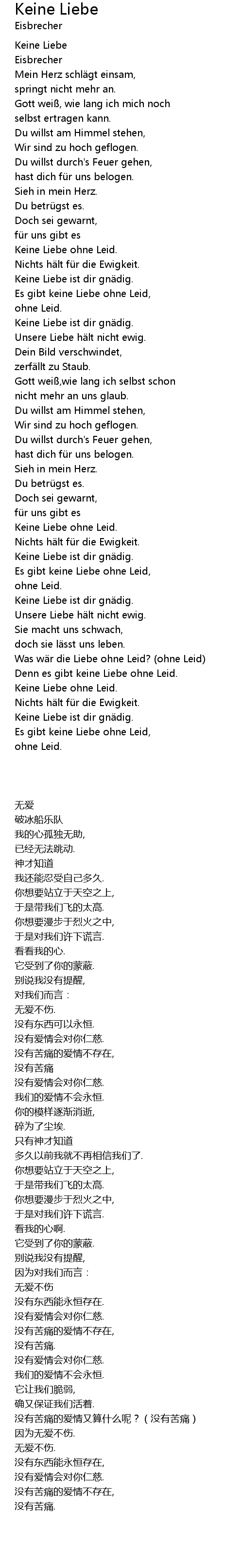 | [02:23.357] | Es gibt keine Liebe ohne Leid, |