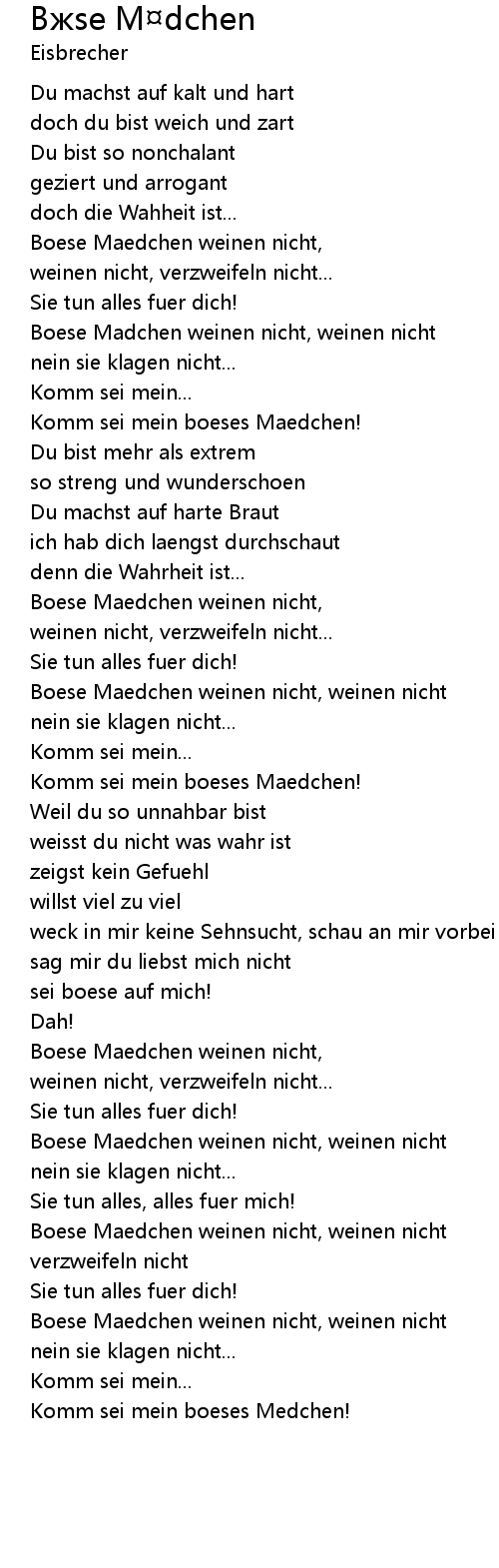 Bжse M¤dchen B se M dchen Lyrics