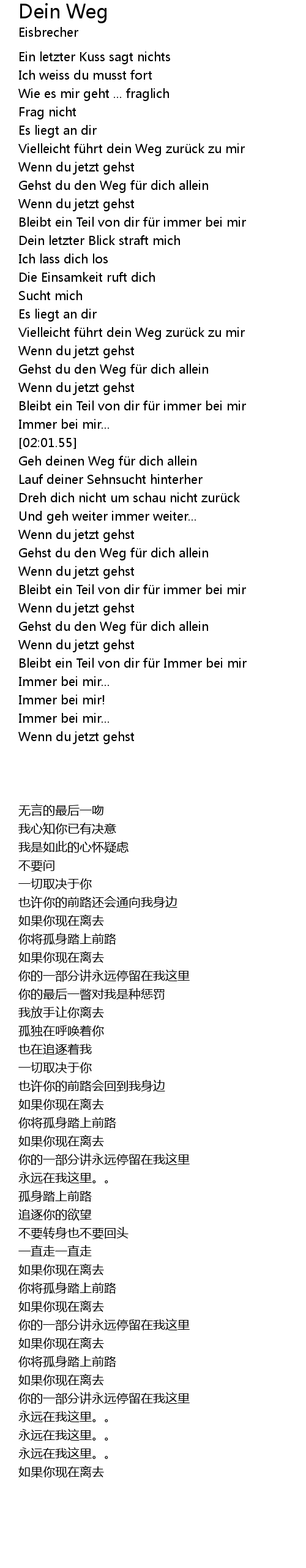 | [01:38.91] | Gehst du den Weg für dich allein |