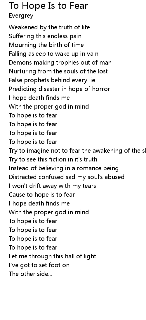 To hope is to fear |