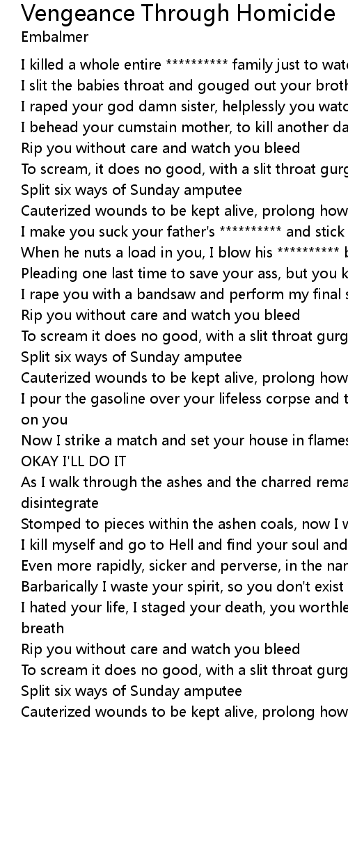 I raped your god damn sister, helplessly you watched and prayed |