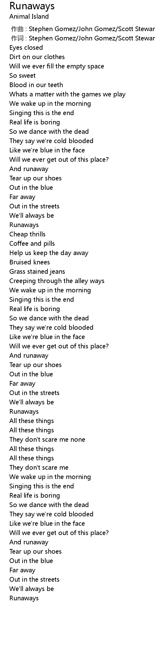 | [00:01.000] | 作词 : Stephen Gomez/John Gomez/Scott Stewart |