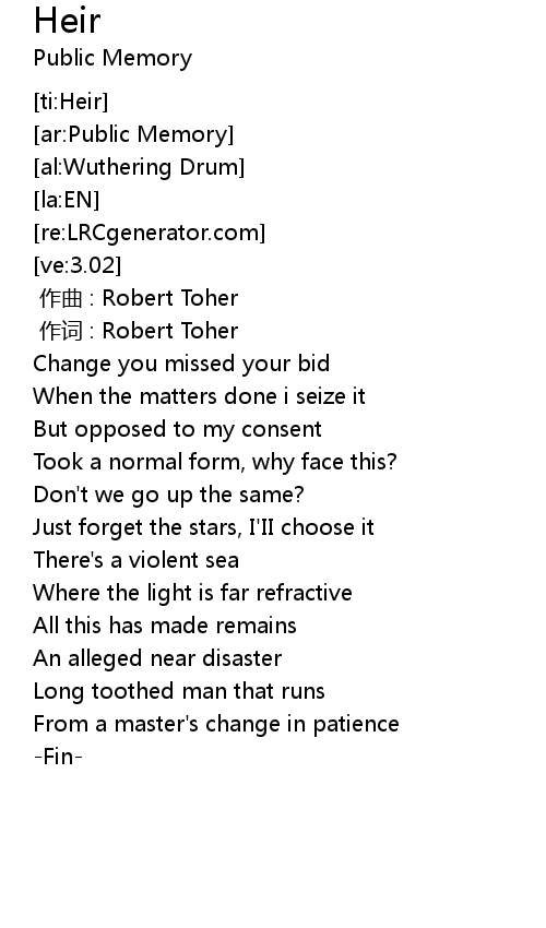 | [00:00.000] | zuò qǔ : Robert Toher |