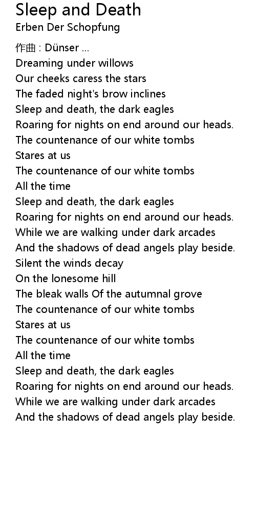 | Song | Sleep and Death |