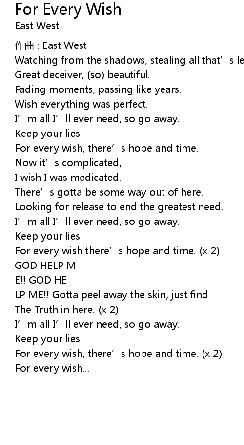 | Song | For Every Wish |